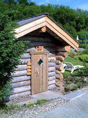 sauna, pesuhuone, pukuhuone sekä terassi että iso pesuallas ja katos pihalla