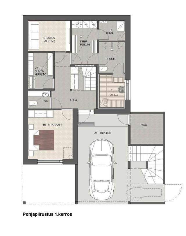 Perhotie (tontit 3, 4, 5 ja 6) 180 km2 (kerrosneliötä) per tontti.