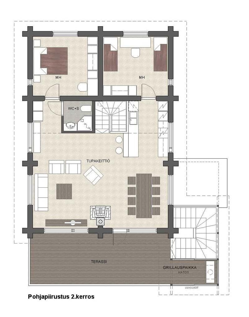 Vaihtoehtoisesti voimme toteuttaa vastaavan loma-asunnon Thermiahirrestä, lue lisää www.thermiahirsi.fi