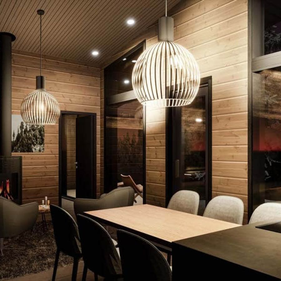 Nämä lomamökit rakennetaan energiatehokkaasta ja ekologisesta ThermiaHirrestä. Lomamökit ovat 90 km2 + autokatos / korkean harjakaton alla. Pohjaratkaisu on suorastaan nerokas, eikä hukkaneliöitä ole. Loma-asunto on suunniteltu nukkumapaikkojen puolesta 6 henkilölle ja jopa lisävuoteilla 8 hengelle (työhuone-mh). Olohuoneen ja tupakeittiön korkean katon alla nautit yhdessäolosta, herkullisesta ruuasta sekä takkatulen loimusta. ThermiaHirsi on aidosti energiatehokas ja ekologinen luonnonmateriaaleista valmistettu hirsituote. Ainutlaatuiset ominaisuudet takaavat hengittävän rakenteen ja hyvän sisäilman, sekä energiatehokkaan loma-asunnon pienellä hiilijalanjäljellä.